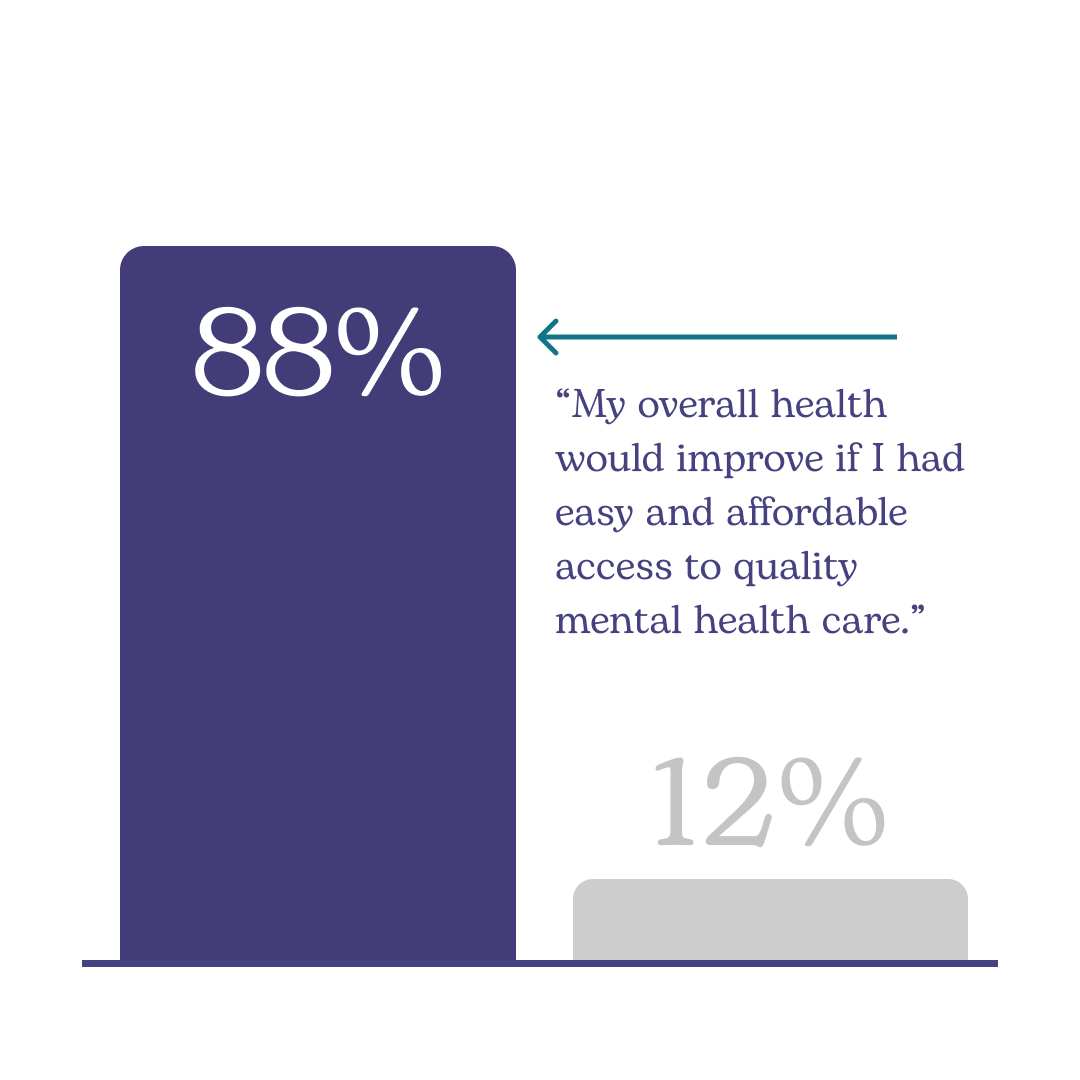 88% say their overall health would improve if they had easy and affordable access to quality mental health care